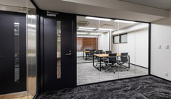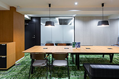 セミナールームや会議室はオープンな空間にしたかったので、ドアも含めてガラス壁を用い、明るく開放感のある間仕切りにしていただきました。