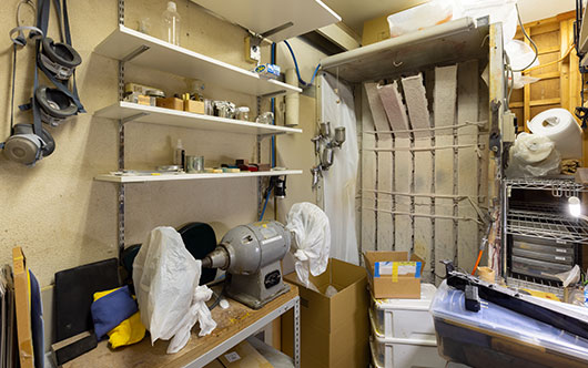 改めてスペースの割り振りを行い、新たに作業台を増設しました。修理中の利便性も考慮して、色再現度の高い照明の設置とコンセントの数も増やしております。