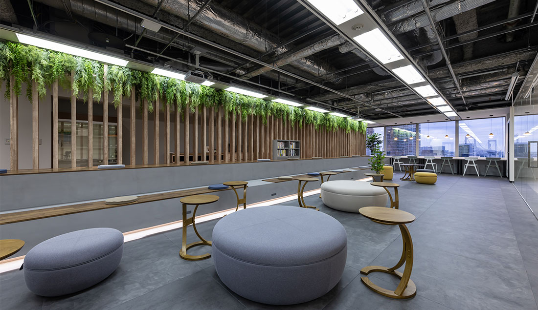 (株)エグゼック様“自然×工業”の融合で窓のないオフィスでも閉塞感を感じさせないデザインに…