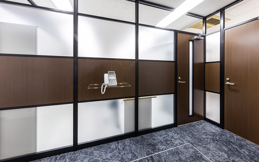 ガラスのパーテーションで解放感のあるスペース