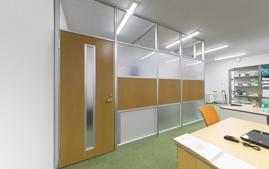 アスニカ(株)様フロアの一角をアルミパーテーションで囲い、会議スペースを…