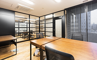 (株)シン・クルーズ様黒フレームと木目で統一されたシックなオフィスに。