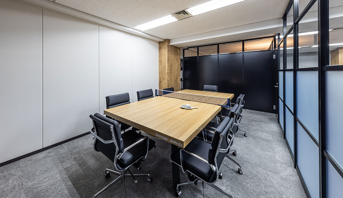 仕事にも遊びにも利用できるピンポンワークテーブルを設置