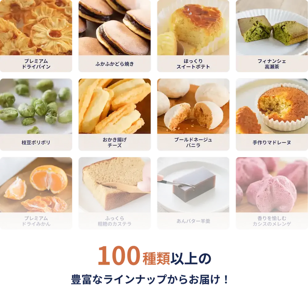 毎月約20種類の新作が登場!コンビニやスーパーにはないプレミア感とワクワク感で社内コミュニケーションも弾みます。