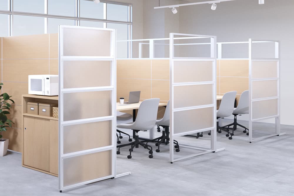 どちらのパーテーションも備え付けの壁とは異なり、比較的手軽に設置でき、交換したり移設したりできる点が特徴です。
