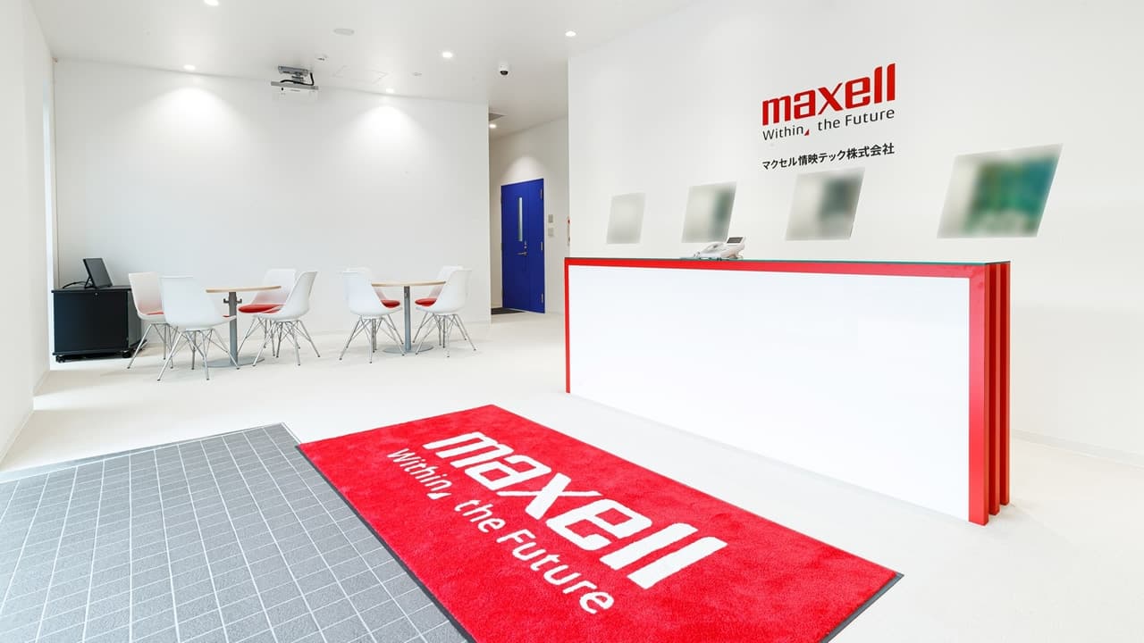 企業カラーのマクセルレッドを白ベースの空間に使用することで、際立たせることができています。また、エントランスで使用している家具も白・赤基調のものを選ぶことで、統一されスッキリとした印象を与えてくれます。