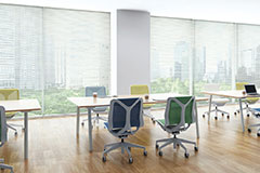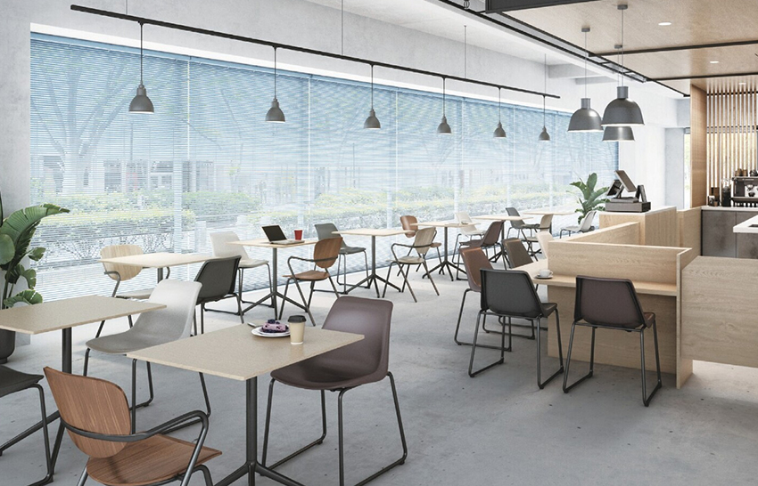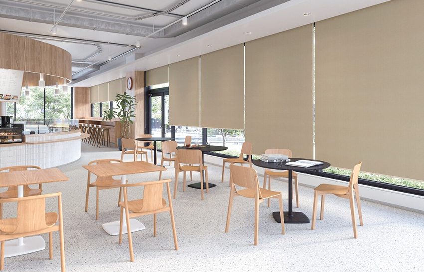 会議室では集中を、カフェでは安らぎを。タテ型ブラインドが光を操り、様々なビジネスシーンに合わせた快適な空間を演出します。