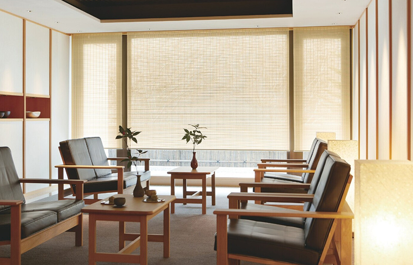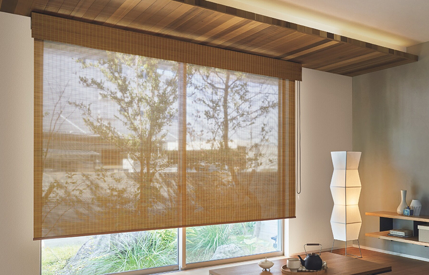 竹すだれをモダンに昇華させた、趣のあるロールスクリーン。自然素材の豊かな風合いが、光を柔らかく通し、落ち着いた和の空間を演出します。視線を程よく遮りながら、外の景色との一体感も楽しめるのが魅力です。