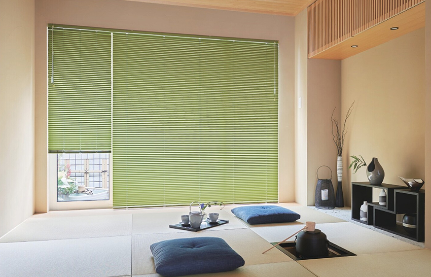| お手入れ方法 | 日常の清掃はハンディモップ等での除塵が基本です。「フッ素コート」加工のスラットは水拭きだけで汚れを容易に除去でき、メンテナンスの負担を軽減します。 |