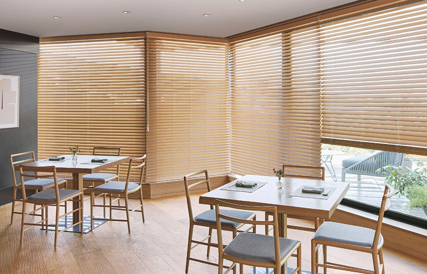 眺望が素晴らしい高層階の会議室には、ヨコ型ブラインドが最適です。スラットの角度調整で、眩しさを抑えながら開放的な景観を確保できます。電動「ホームタコス」なら、複数の大きな窓もリモコン一つで一括操作可能。重要な会議にふさわしい、快適でスマートな光環境を創出します。